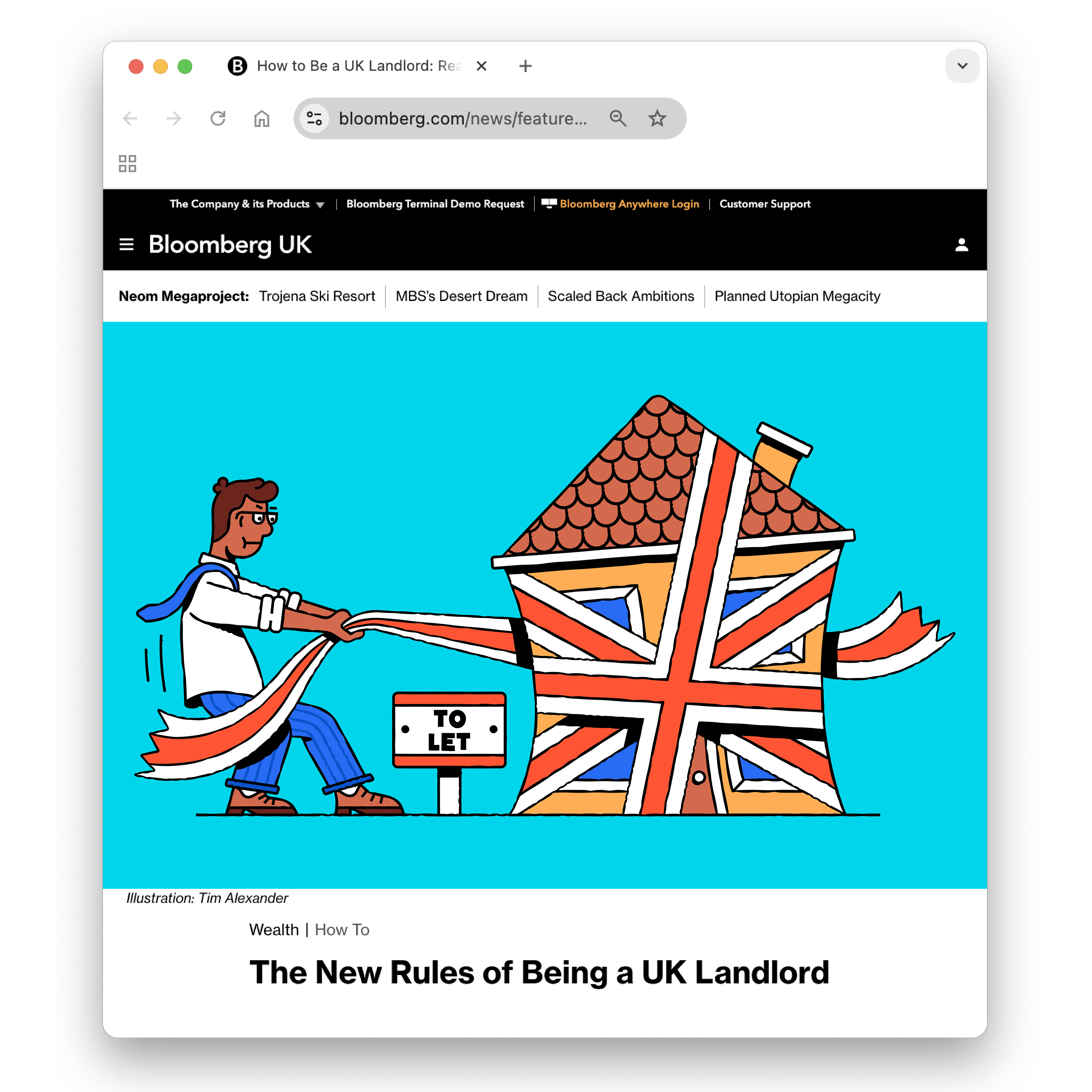 Editorial illustration for Bloomberg about the new rules of being a UK landlord.