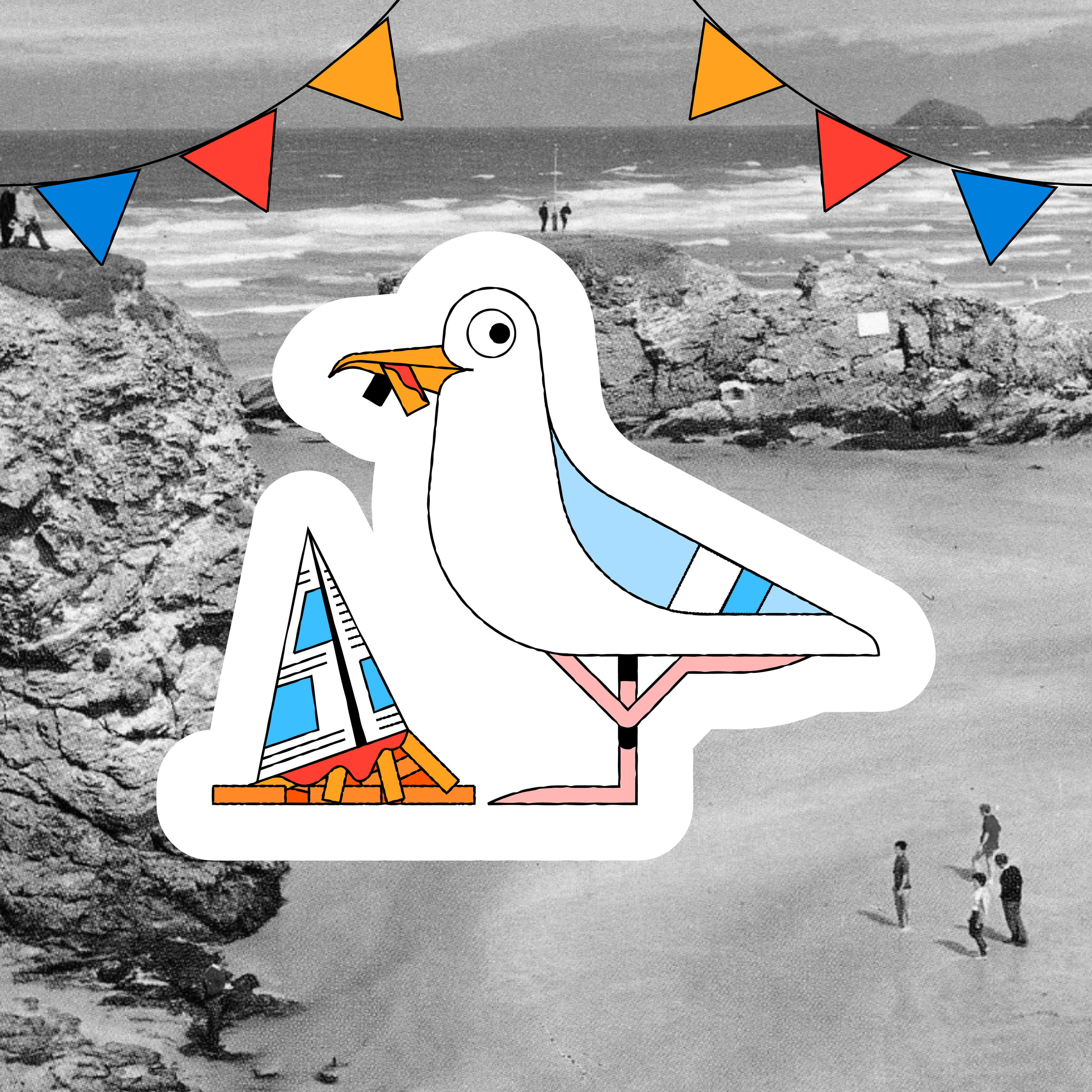 Paying homage to all those summers of beers on the beach, from those pesky seagulls nicking your chips, to lugging the cool box full of beers!