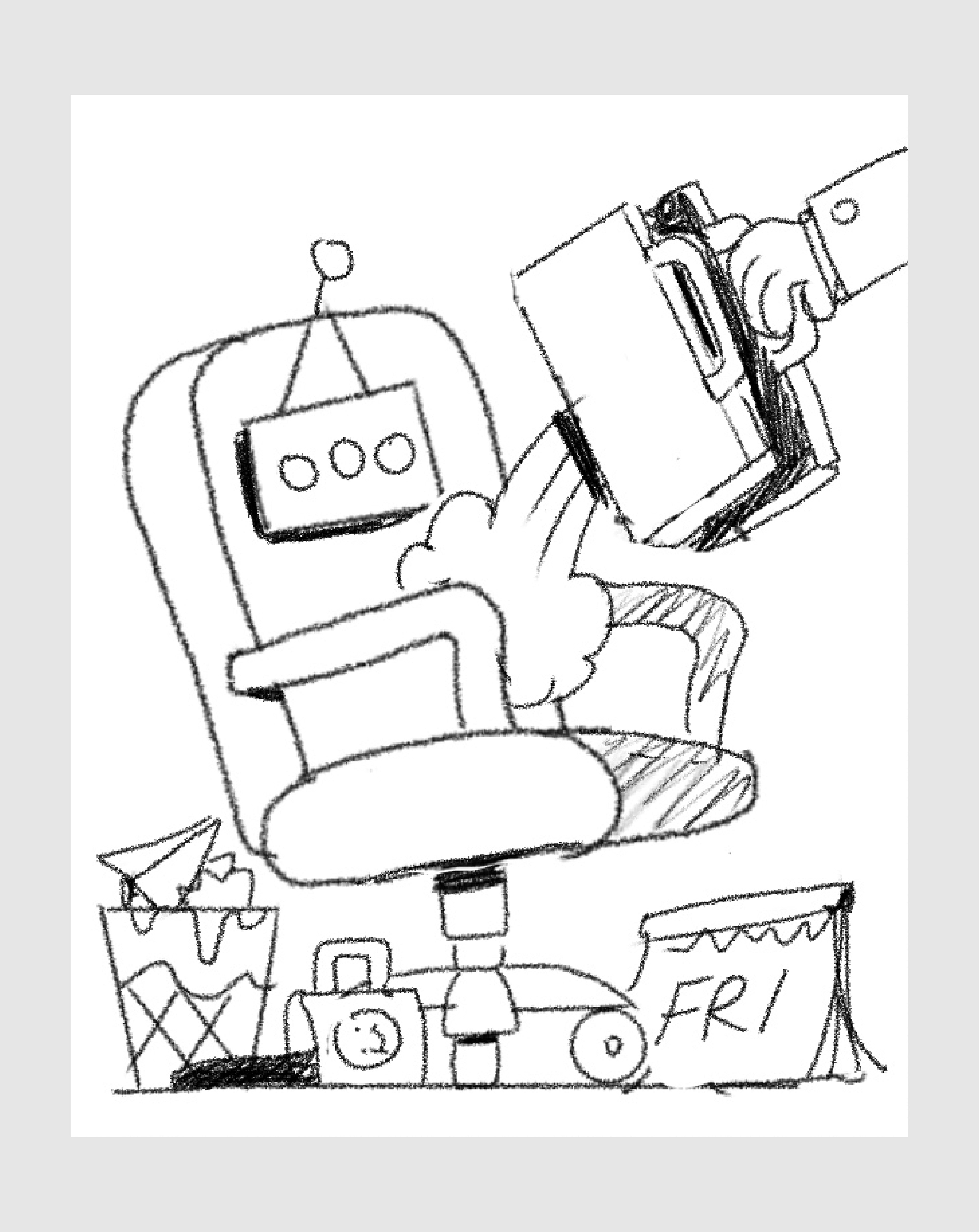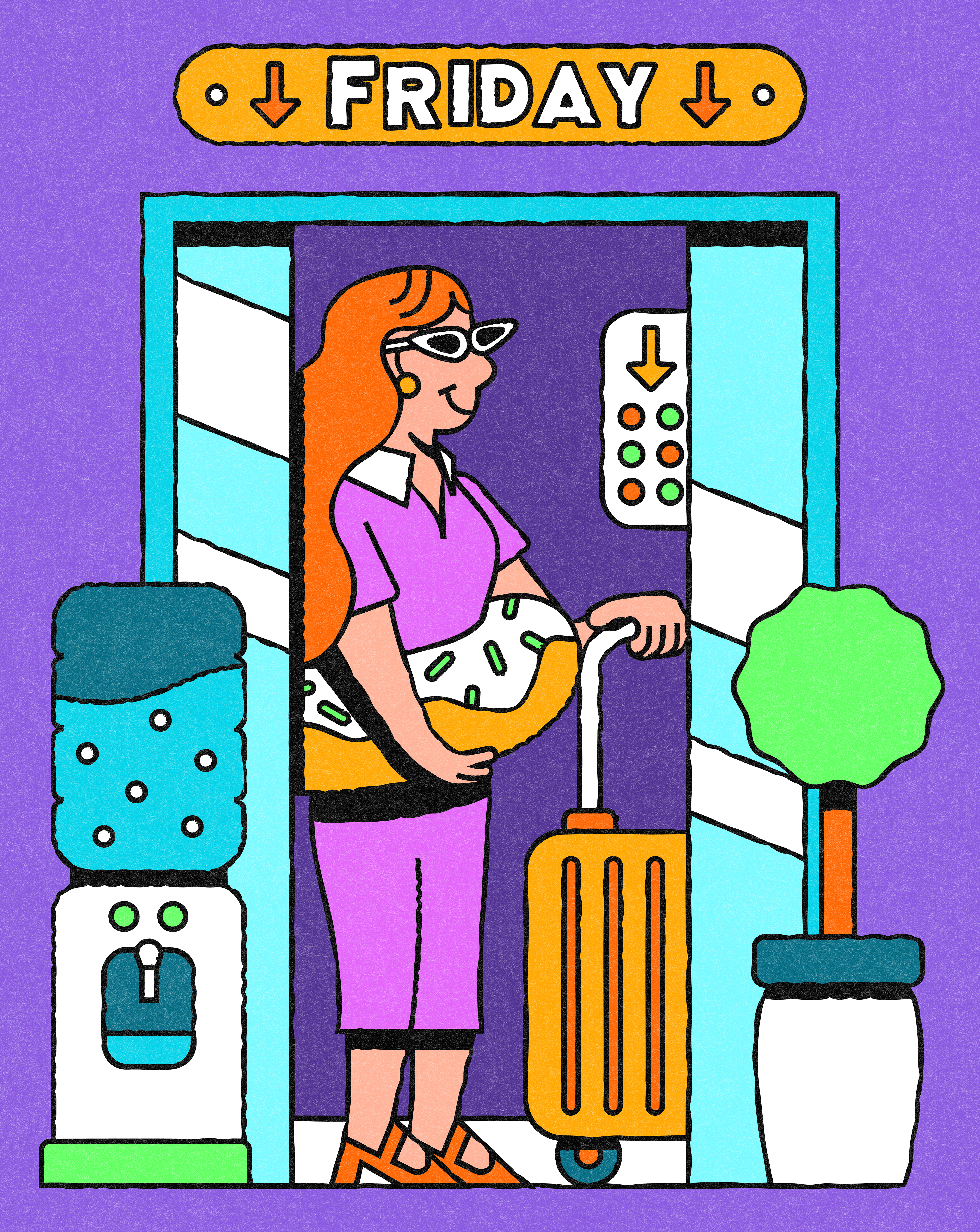 Editorial illustration for Demorgen about how employee's have stopped working on Fridays.