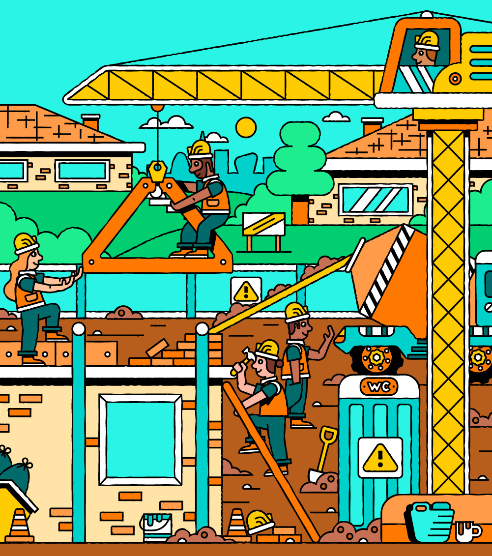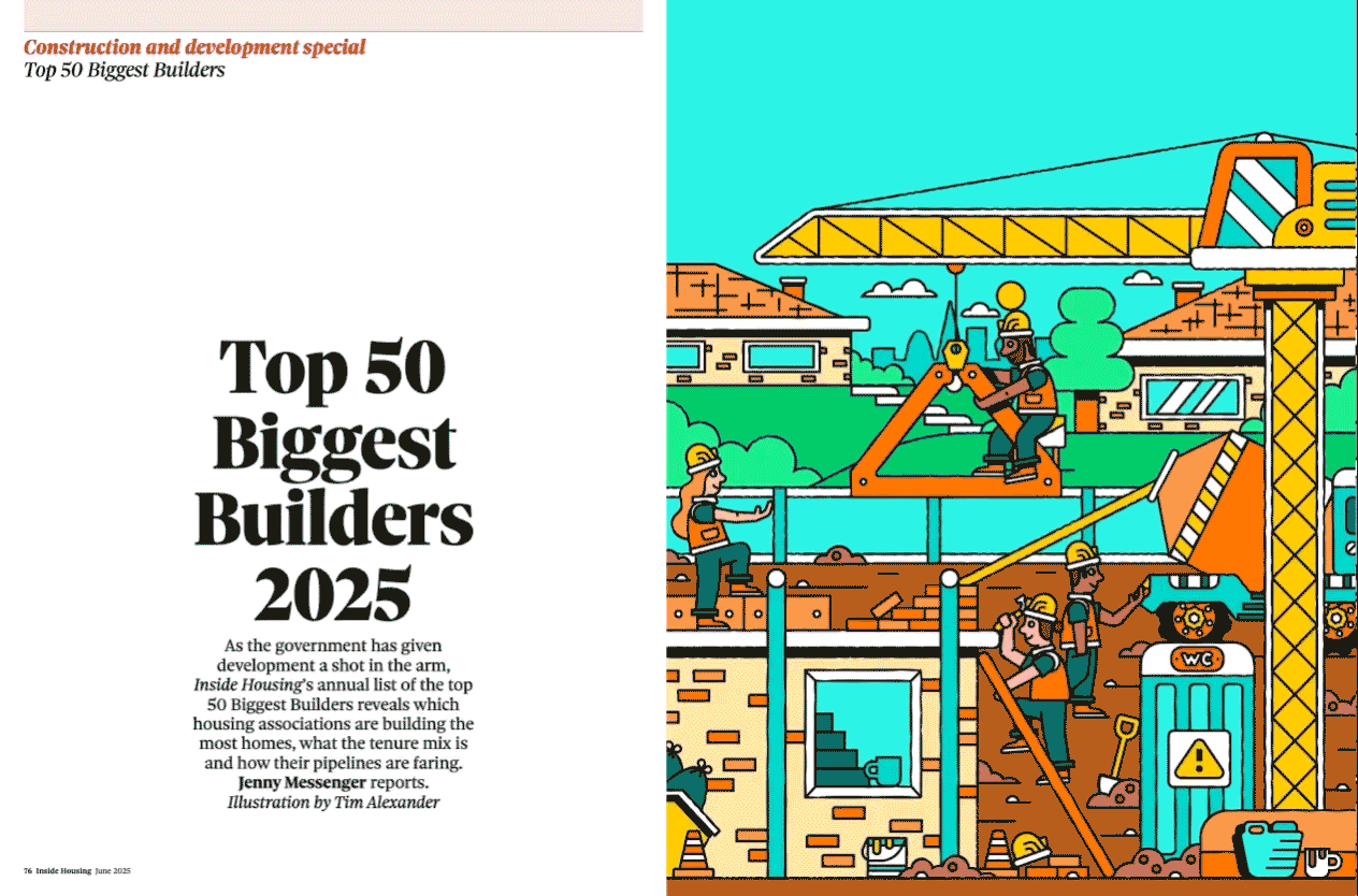 Animated illustration for Inside Housing Magazine on an article about the top fifty biggest builders, which talks about which housing associations are building the most homes.