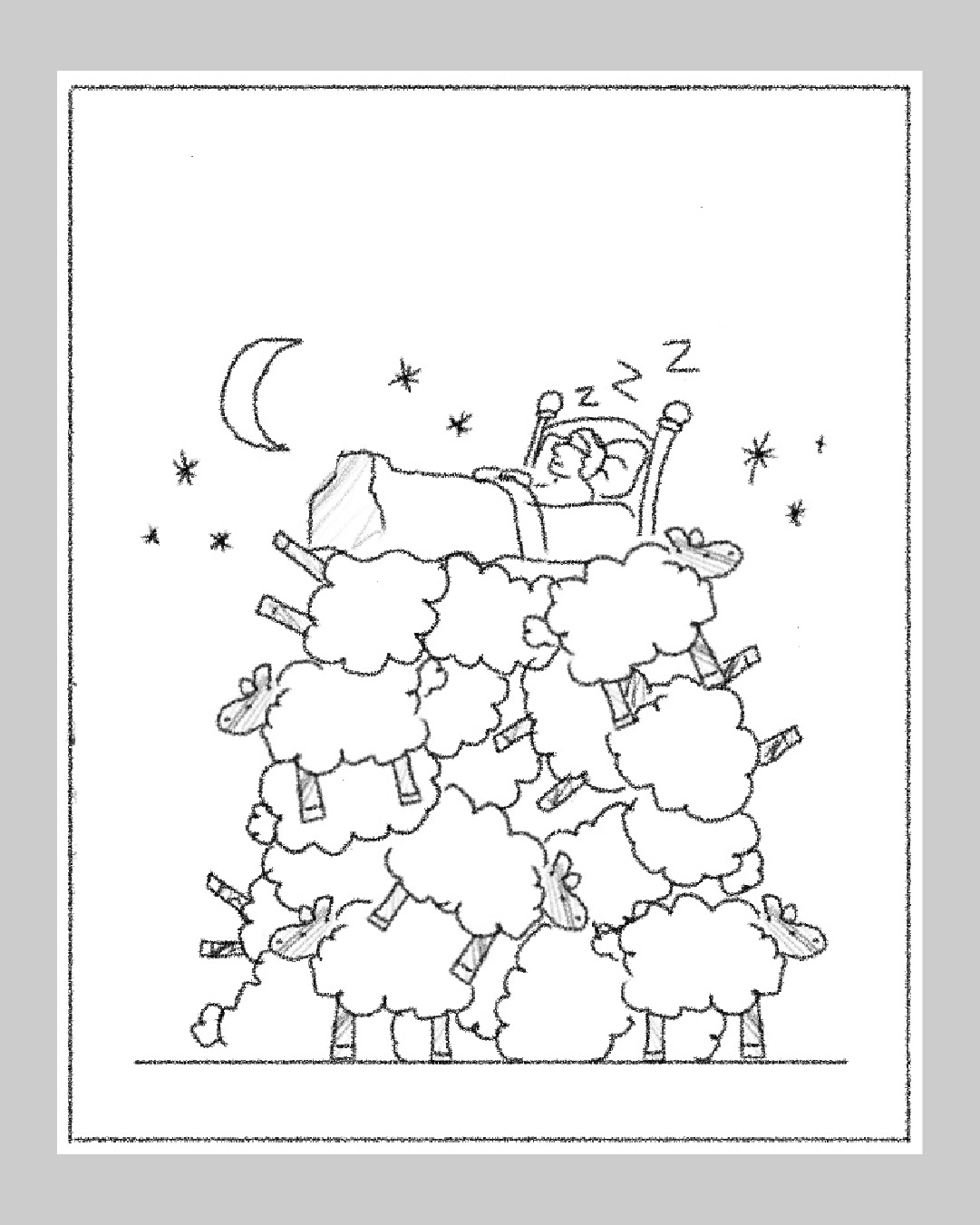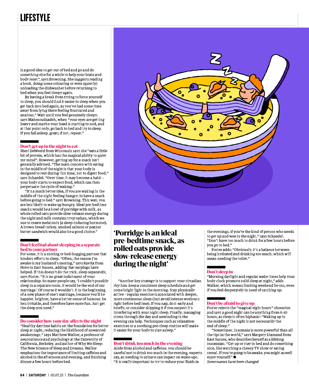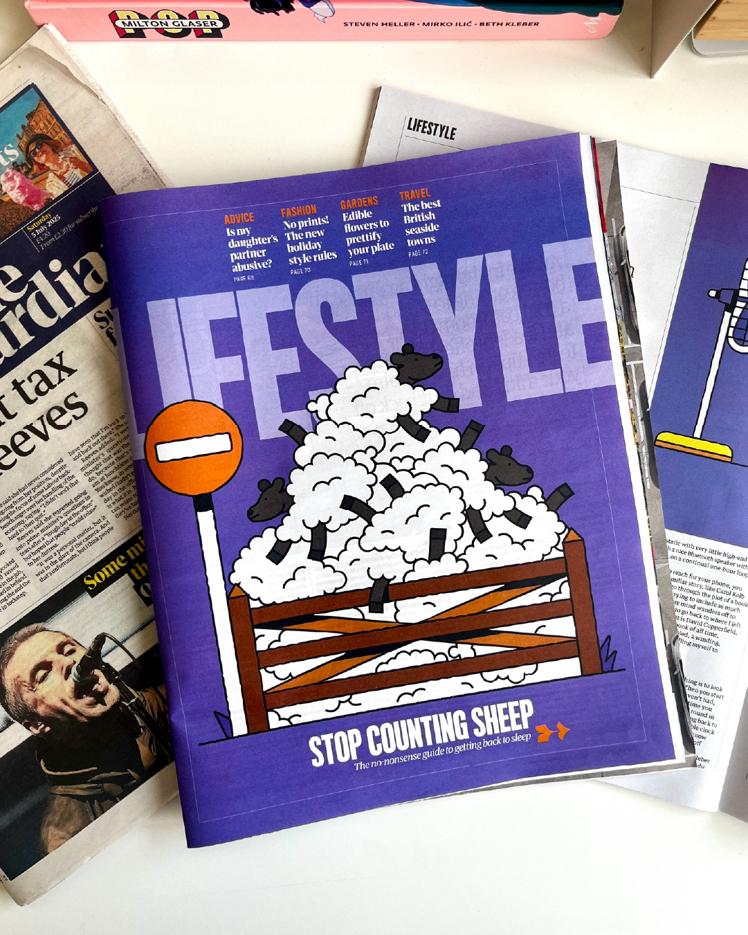 Cover illustration for The Guardian's Saturday supplement. The feature was called 'How to get back to sleep' and it's about when you wake up in the night and struggle to get back to sleep.