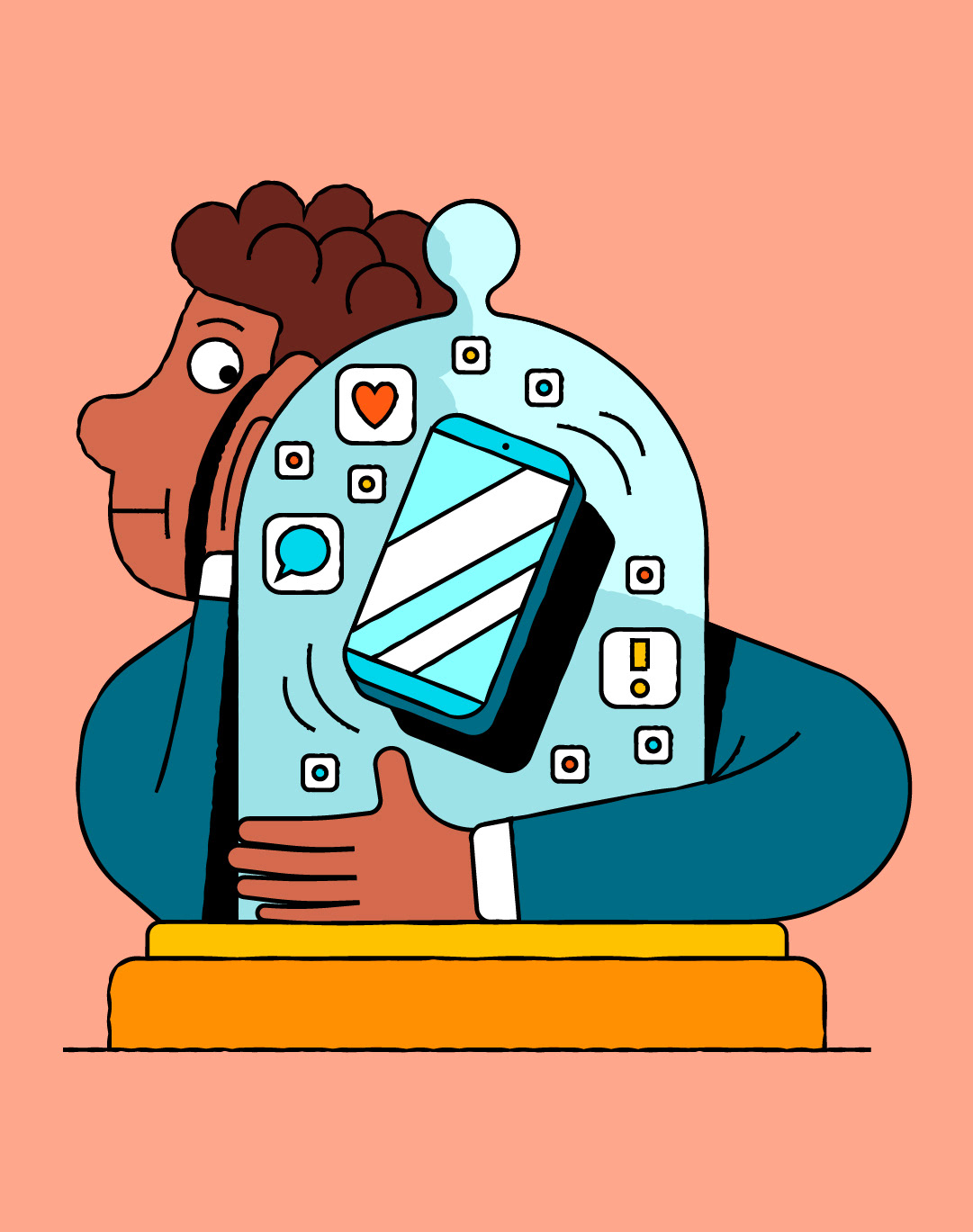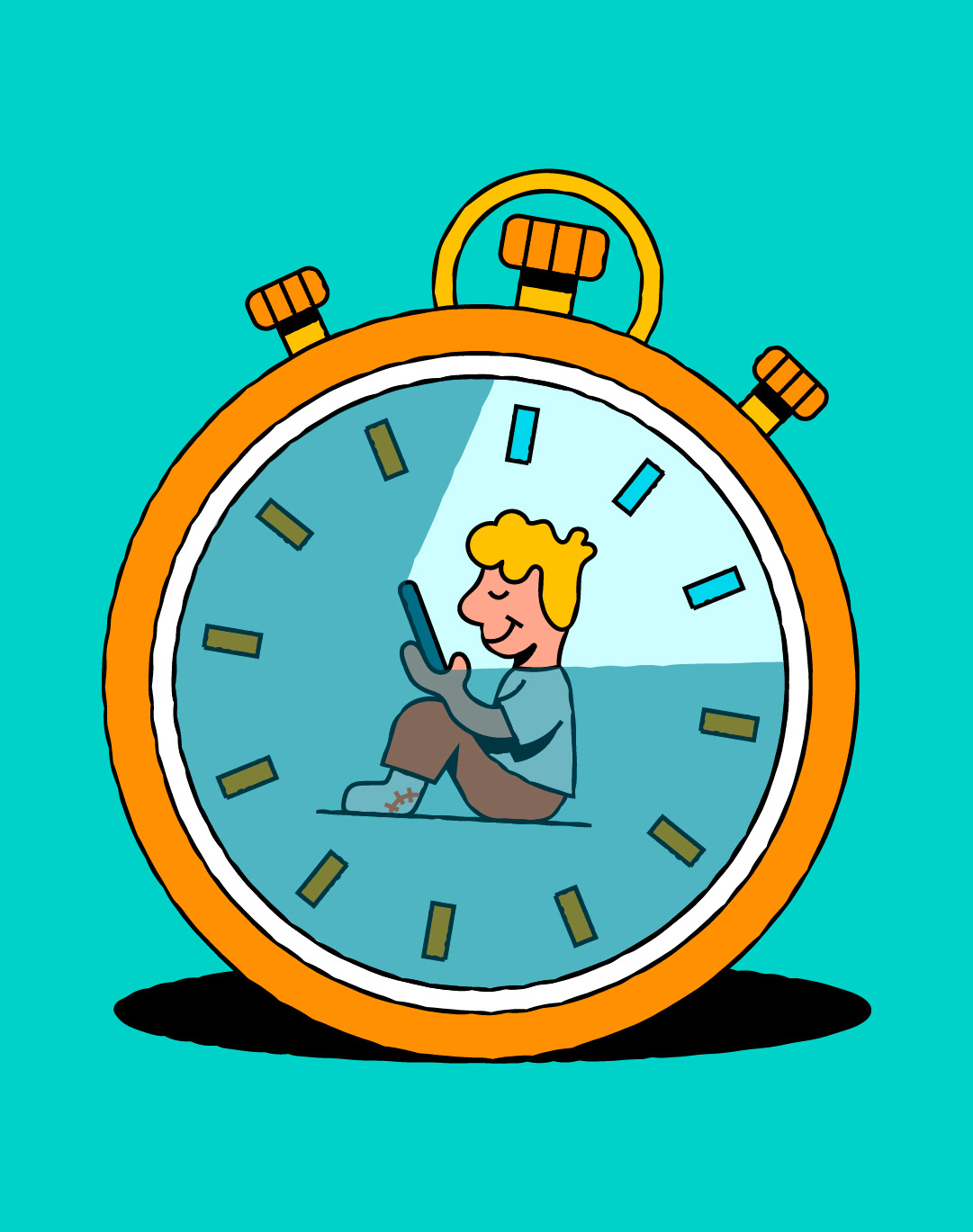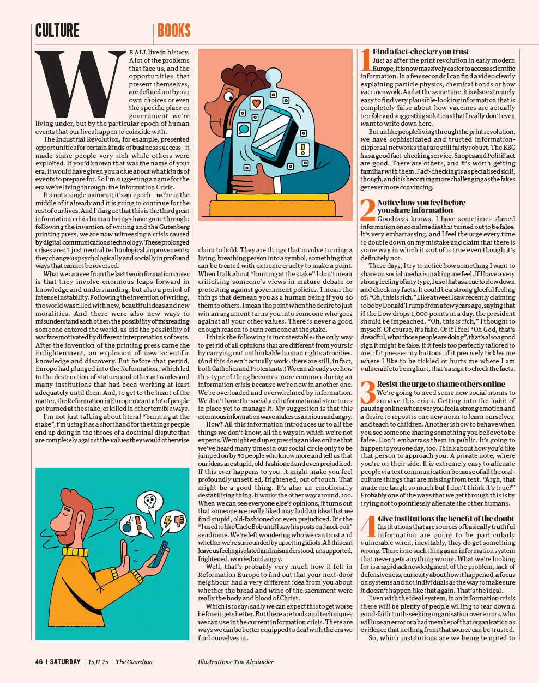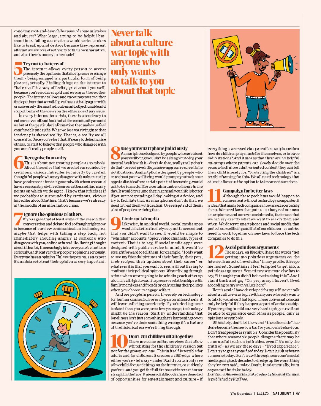 Cover illustration and interior spots for Guardian Books, accompanying an article about how to survive the digital age.