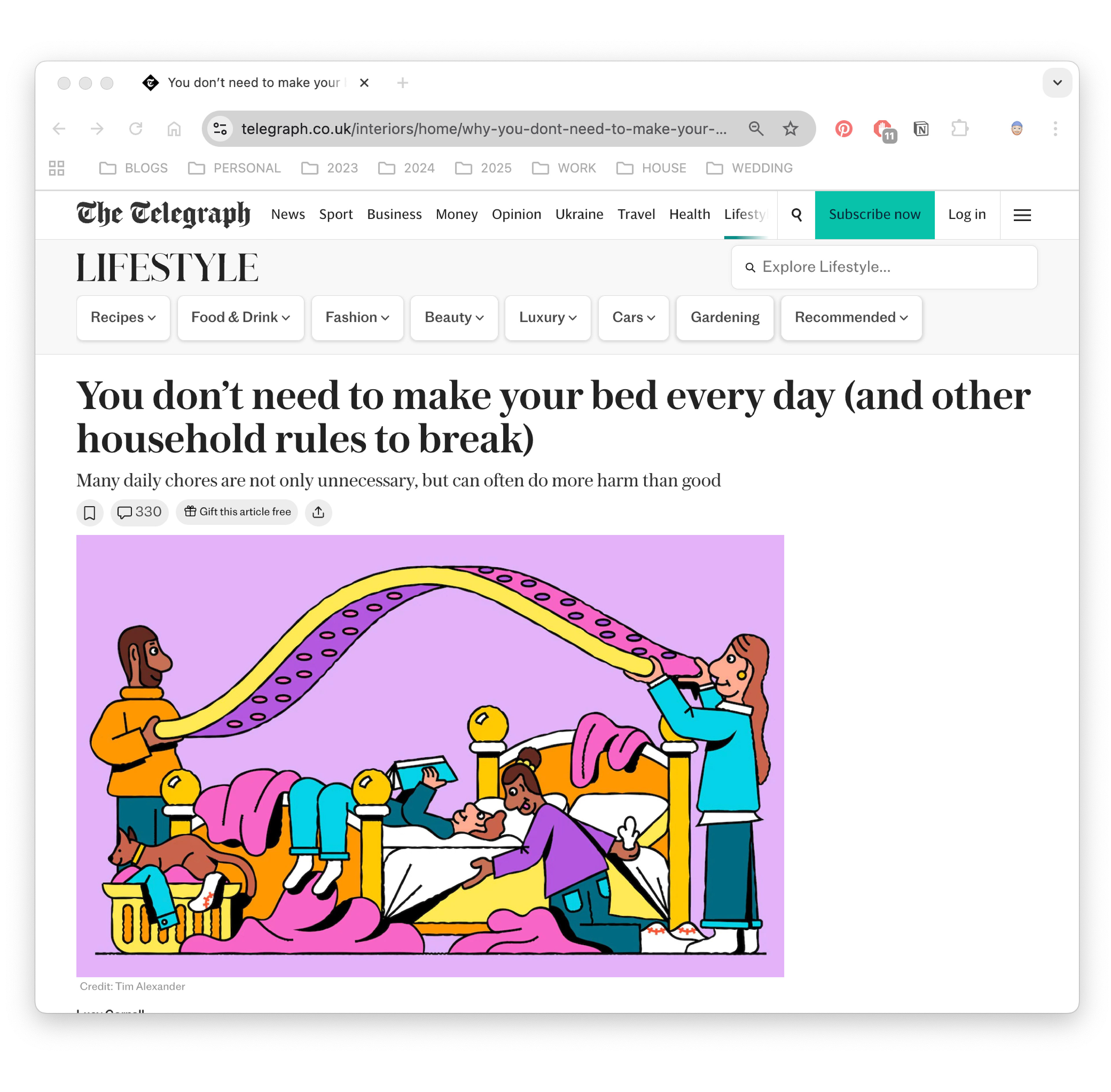 Illustrated lead and spots accompanying an article in The Telegraph about household rules that are ok to break every now and then.