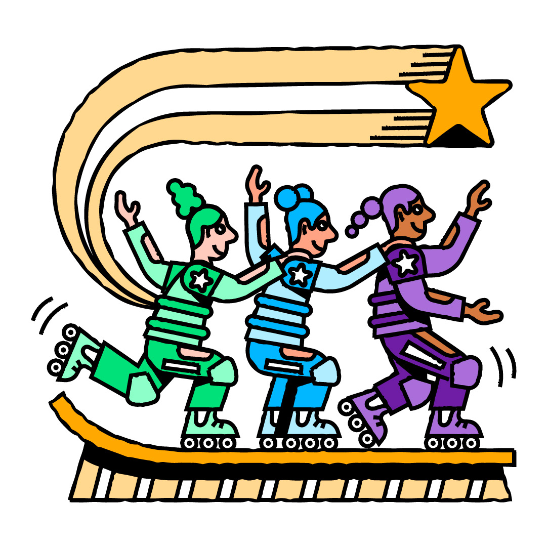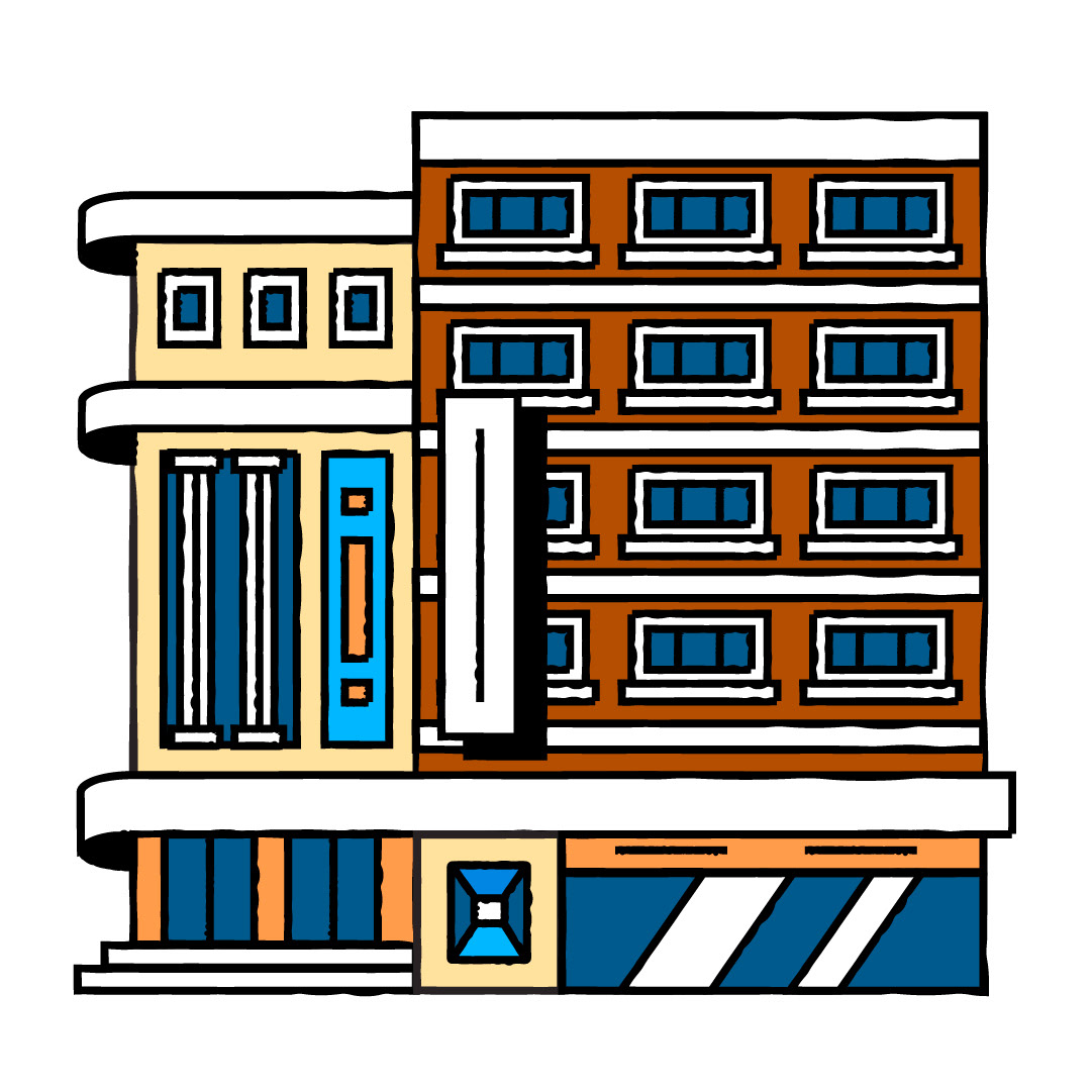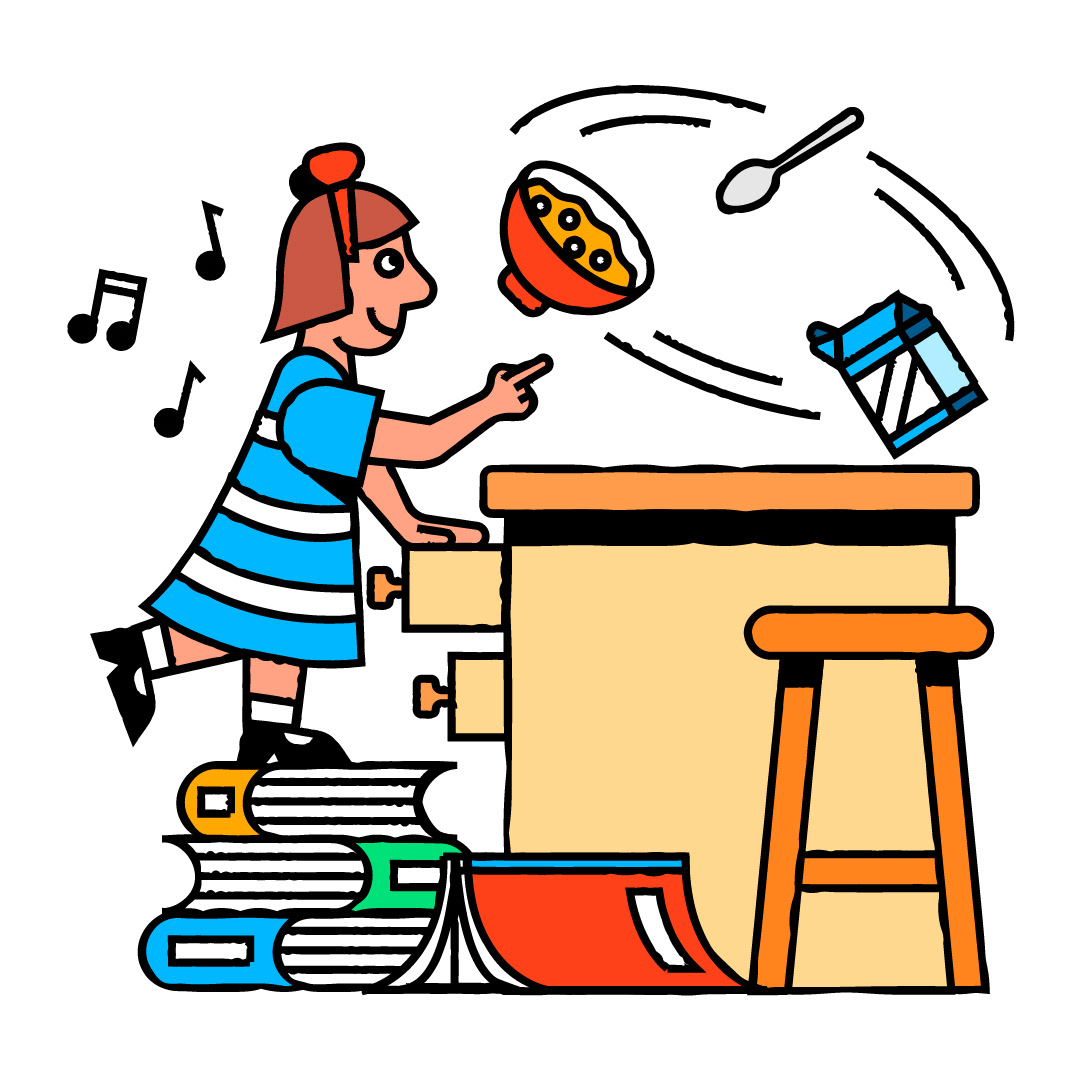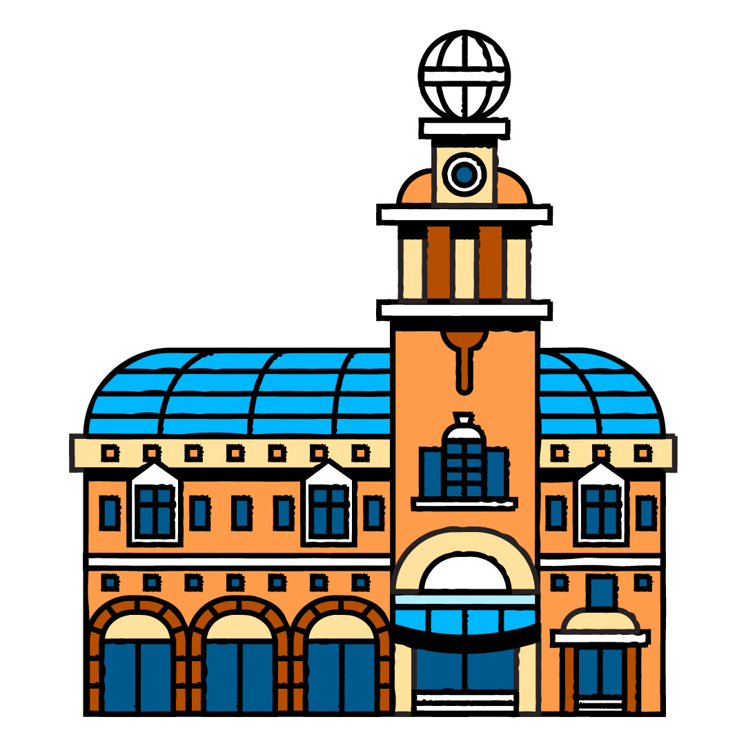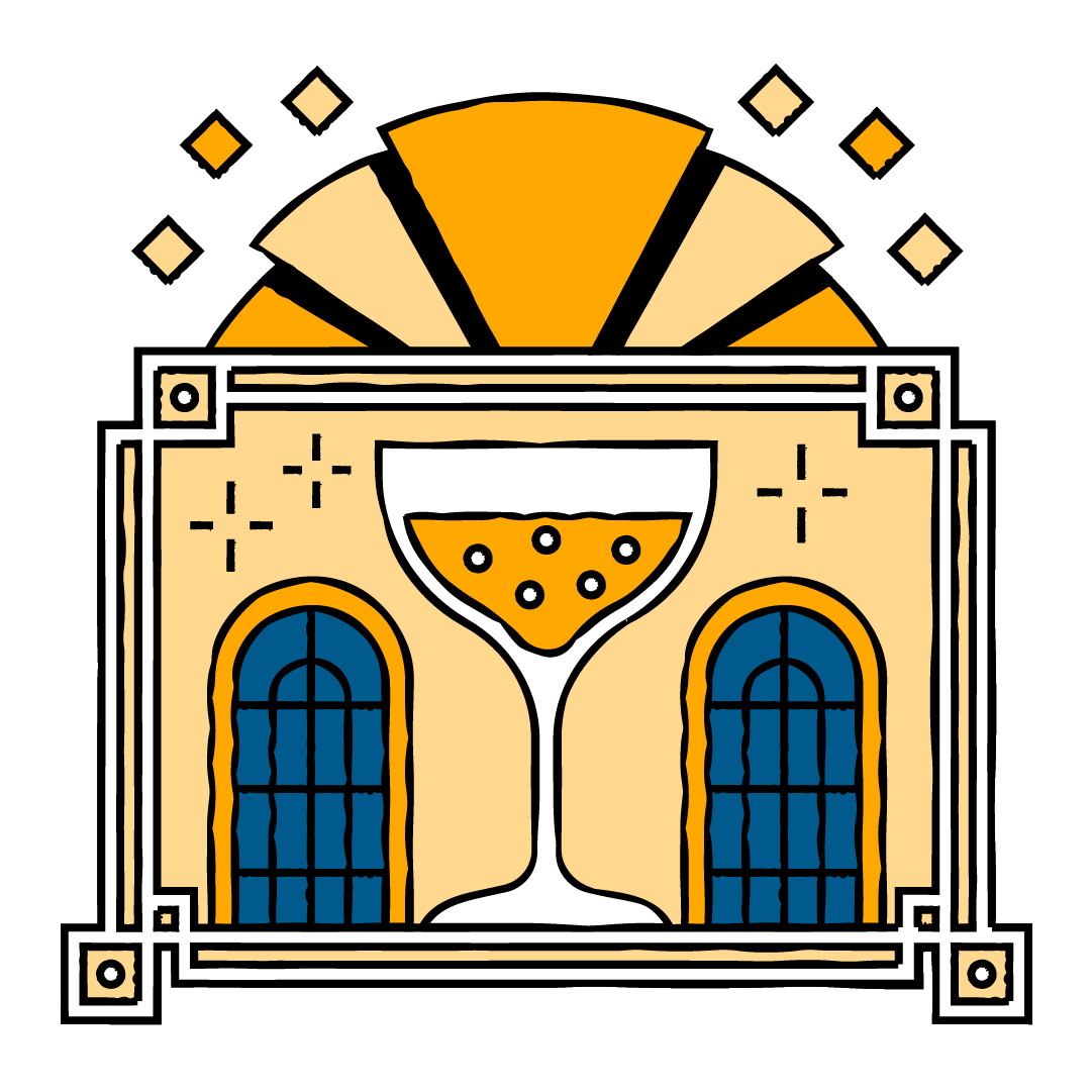 . Spot illustrations show the differerent venues, stage shows and theatre icons.